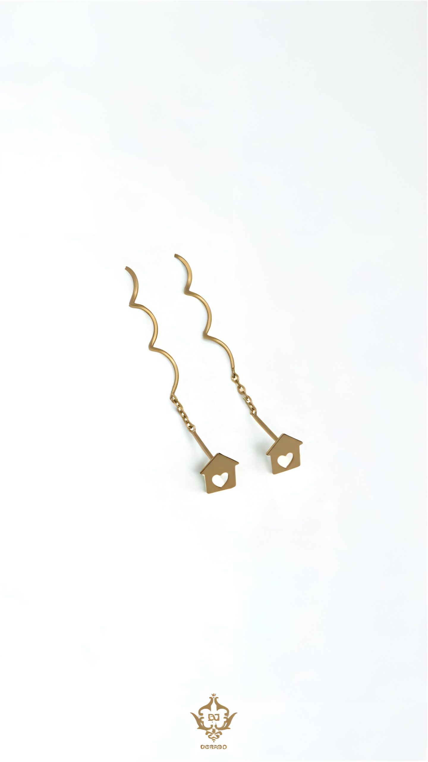 گوشواره ۱۸ عیار زنجیری طرح خانه عشق
